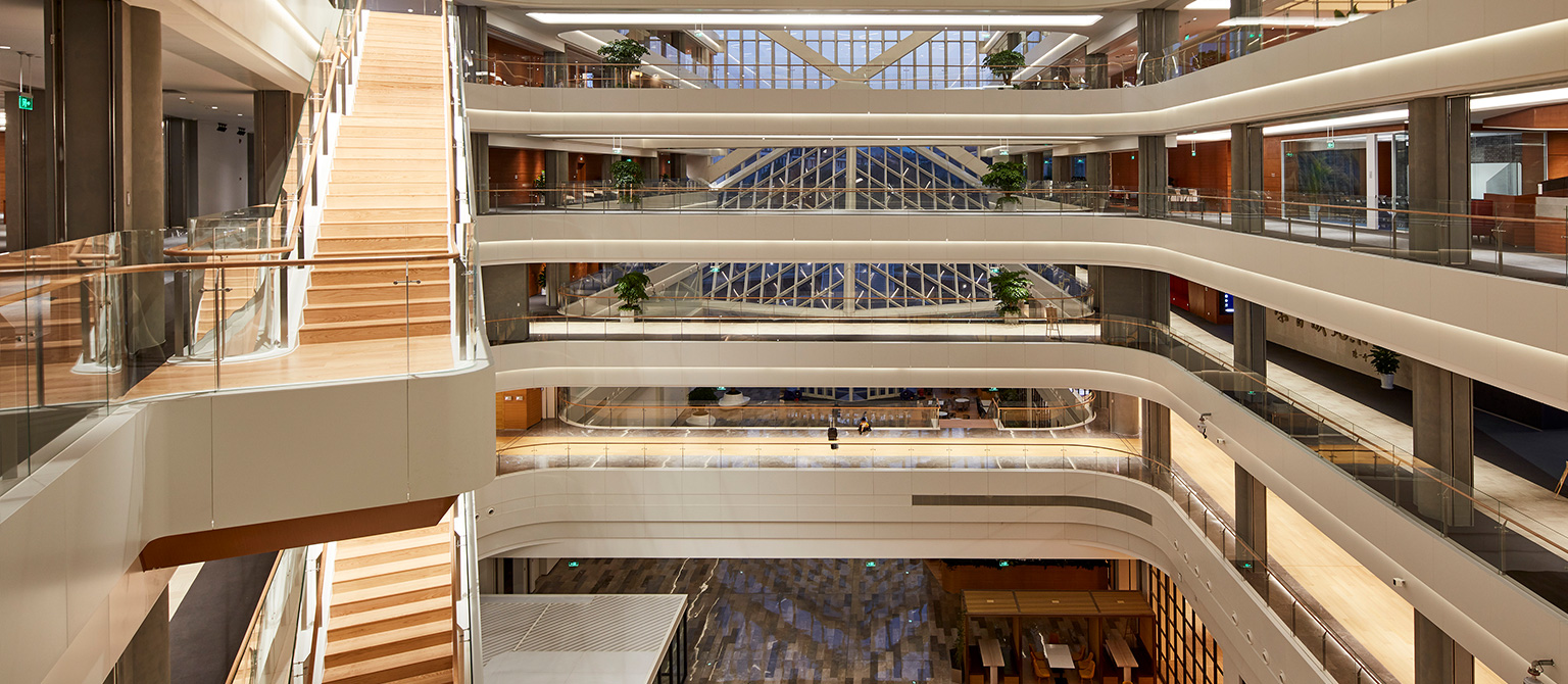 項(xiàng)目創(chuàng)造了一種全新的辦公組織模式,對(duì)超大建筑平面的探索,從設(shè)計(jì)角度合理處理超大建筑平面的空間布局、交通組織、物理環(huán)境、消防等方面的問題,探索出一種平面布置新的可能性,可以為員工提供更多交流創(chuàng)新的機(jī)會(huì),可以為企業(yè)提供更符合企業(yè)辦公模式的建筑空間。