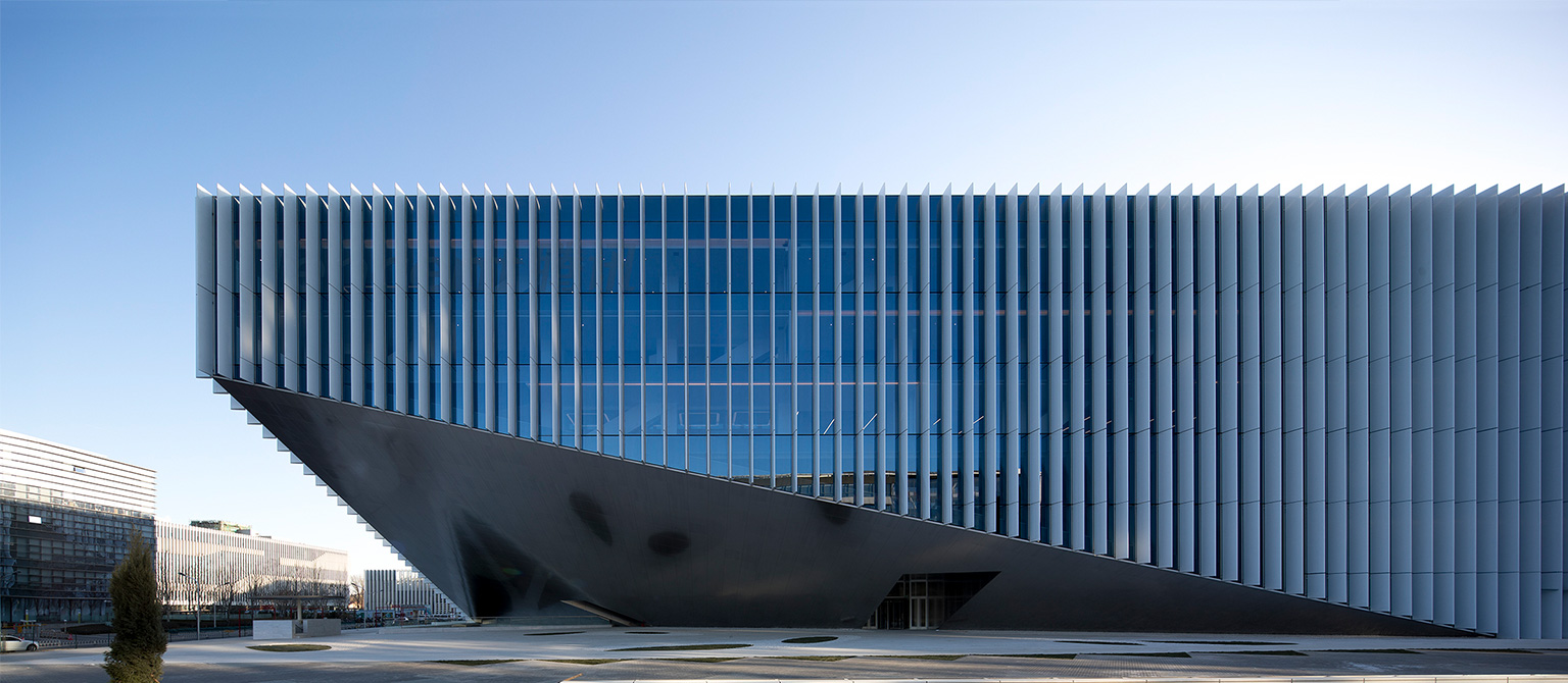 建筑設(shè)計(jì)的理念是“凝聚、融入、溝通”,為員工提供了全新的生活與工作方式。建筑的特點(diǎn)是 “外在整體,內(nèi)部靈動(dòng)”。建筑采用方形,穩(wěn)固性、簡約以及厚實(shí)感使其成為軟件園的一個(gè)扎實(shí)的區(qū)塊。180米X180米的超大平面促使室內(nèi)工作環(huán)境更像是一座城市而非簡單的一棟建筑。底部切角界定了入口,輕盈的視覺效果令建筑仿佛從地面浮起一般。頂部退臺(tái)創(chuàng)造了環(huán)境優(yōu)美的戶外區(qū)域。室內(nèi)外庭院使超大的樓層變得豐富多樣,也提供了與自然的接觸機(jī)會(huì)。