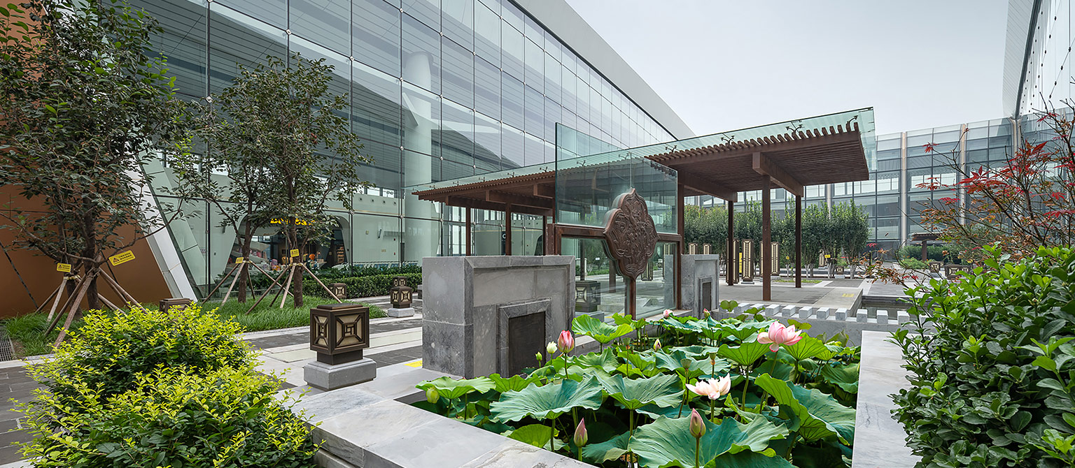 北京新機場指廊庭院分別位于航站樓五個指廊末端,面積各約2,000平米,為航站樓提供戶外休憩及吸煙區(qū)。庭院景觀設(shè)計以中國絲綢之路文化理念為基礎(chǔ),選取特色文化符號絲、茶、田、瓷文化主題賦予國內(nèi)區(qū)4個庭院具有個性的現(xiàn)代手法表達;國際區(qū)指廊庭院定義為中國園,是向世界窗口輸出的中國傳統(tǒng)園林的形式。