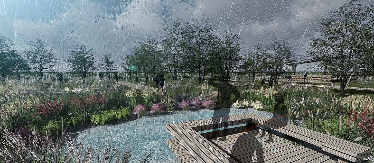 采用何種設計思路能凸顯景觀和生態(tài)的最大化?——嘉興素有“絲綢之府”的美譽,設計通過一條如絲綢般的旱溪貫穿始終,塑造場地設計的完整性。旱溪一方面承擔了雨水收集、過濾、下滲重要的生態(tài)作用,另一方面承載了文化的象征意義。