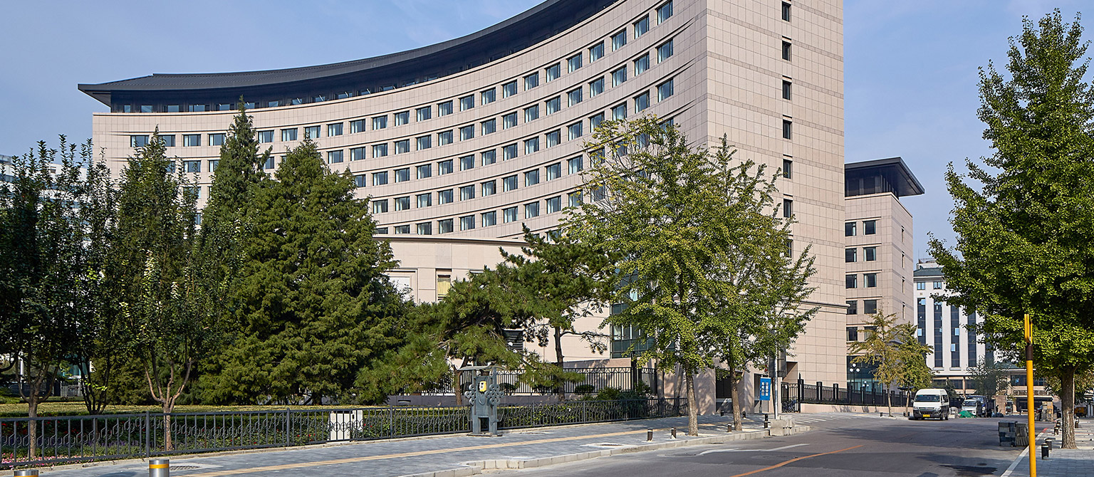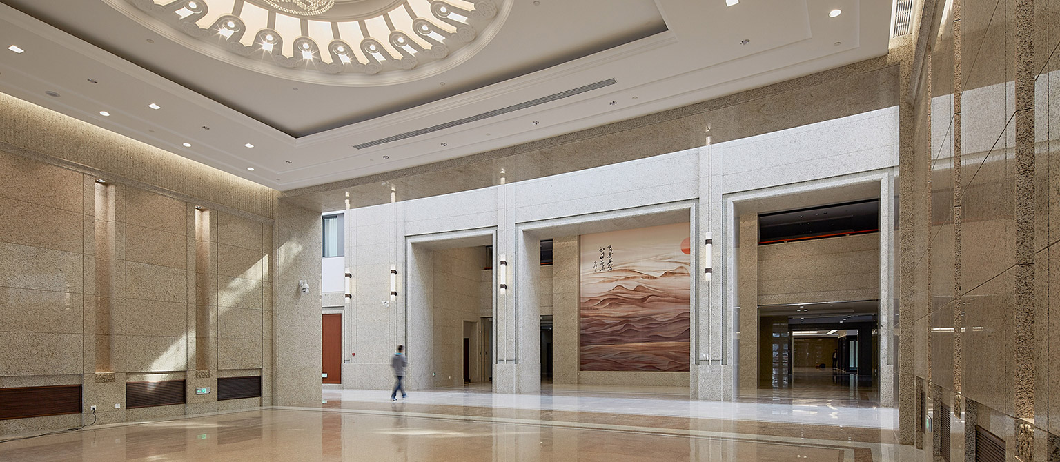 在維持原有建筑形象的同時(shí),進(jìn)行優(yōu)化設(shè)計(jì),尊重婦聯(lián)歷史和本地段建筑文脈,與周圍環(huán)境協(xié)調(diào),體現(xiàn)沉穩(wěn),莊重,包容,不張揚(yáng)的理念。布局上因地制宜,將原有主體南側(cè)擴(kuò)建一禮儀大廳,整個(gè)建筑群體近似“工”字形,在東側(cè)圍合為一個(gè)東院,為日常人流車流提供回轉(zhuǎn)空間,南部為禮儀性出入口空間緊鄰城市綠化帶。