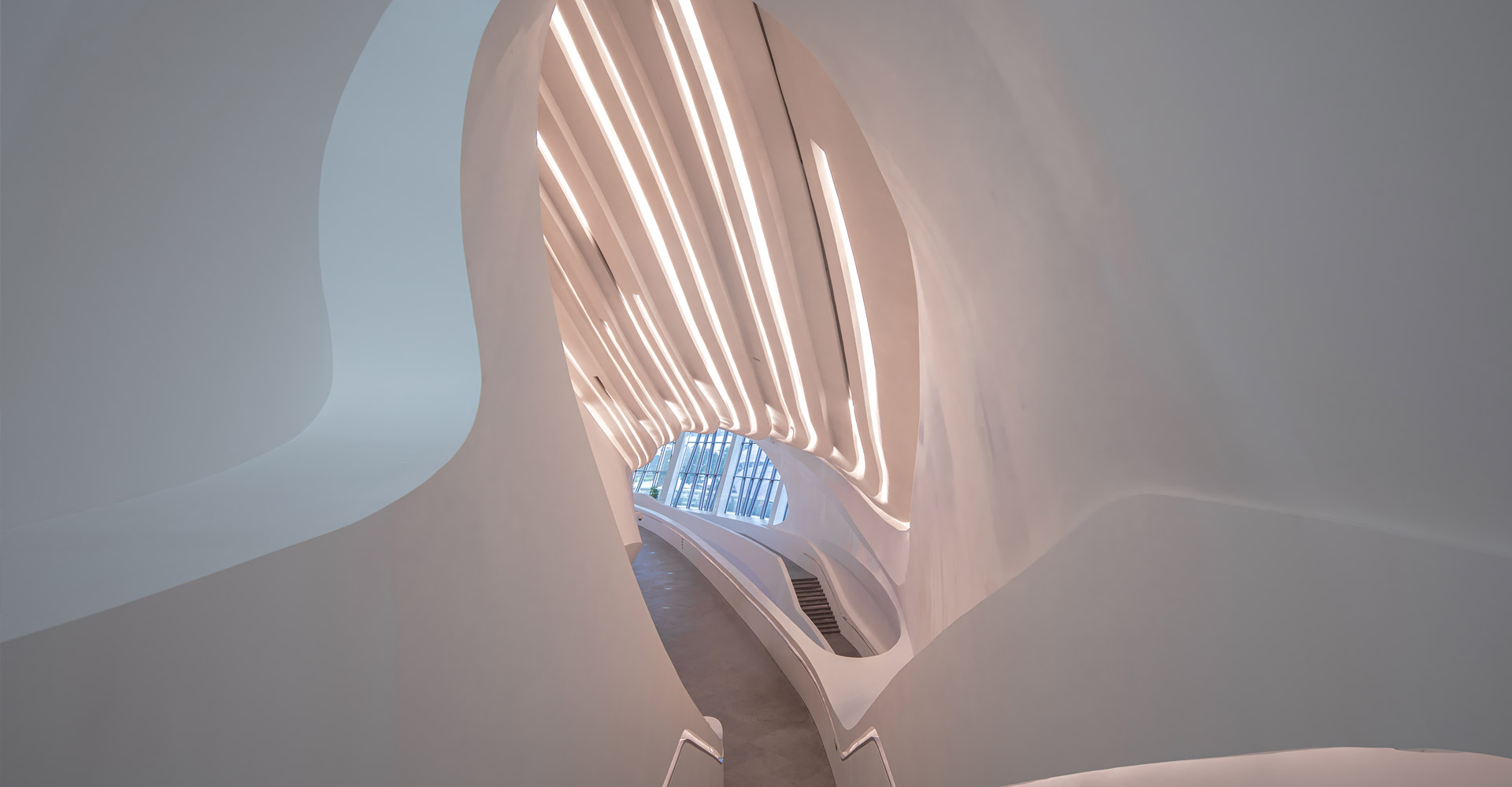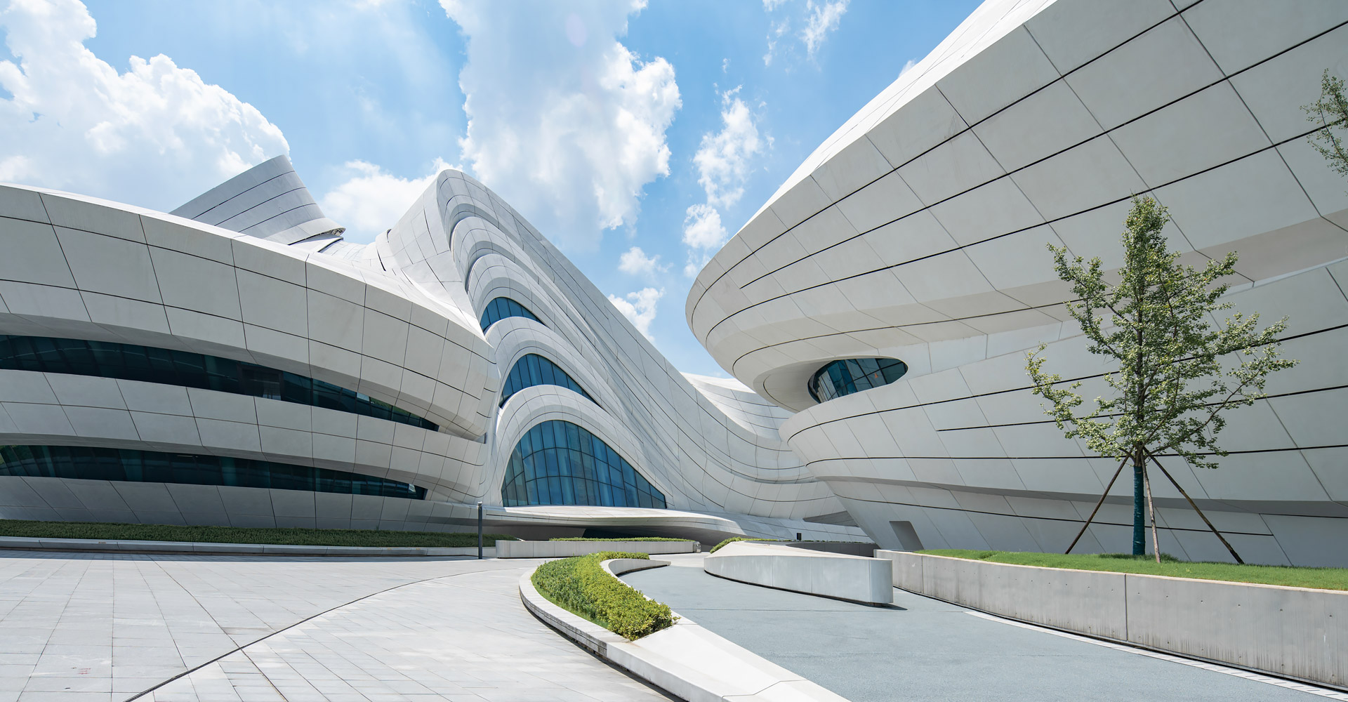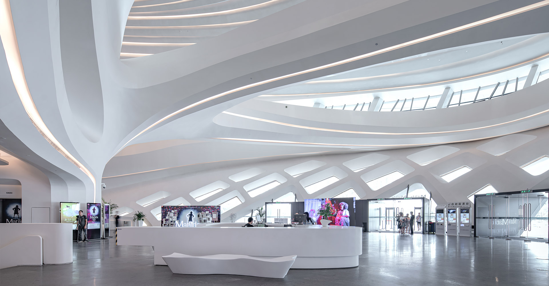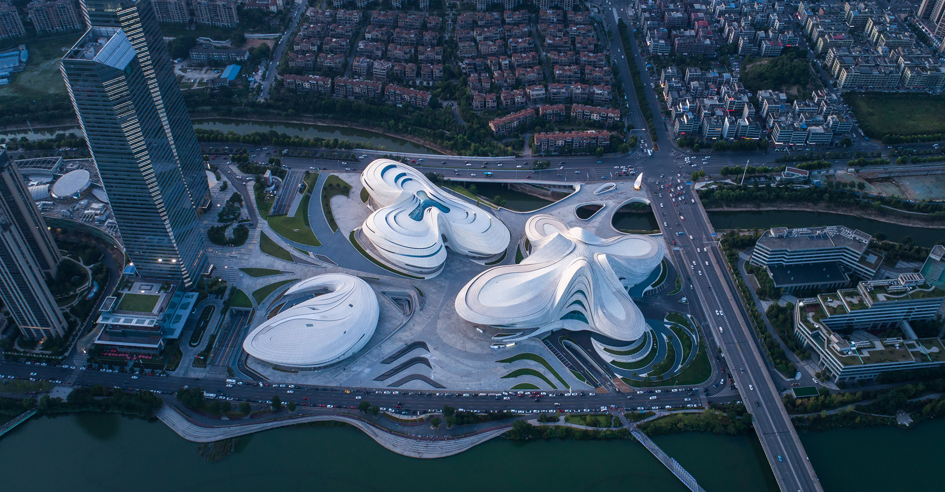 本項(xiàng)目三個(gè)建筑造型緣起于“梅花”,每個(gè)單體由“梅花”的花瓣衍生而來(lái)。大劇場(chǎng)為四片花瓣,藝術(shù)館為三片花瓣,小劇場(chǎng)為一片花瓣,高高低低地散落在梅溪湖畔。三個(gè)抽象的造型均為行云流水般的流線(xiàn)型設(shè)計(jì),主體均為(鋼)框架-鋼筋混凝土剪力墻結(jié)構(gòu)體系,屋蓋均為單層鋼網(wǎng)格結(jié)構(gòu)體系。