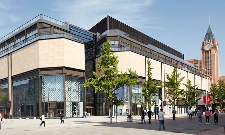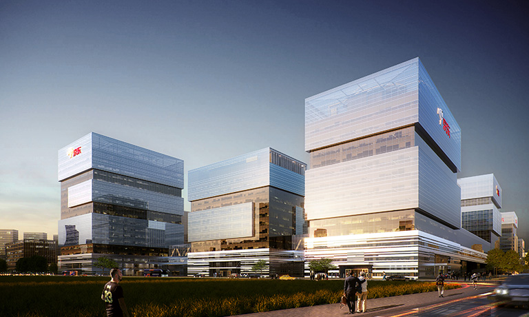 本項目位于一個規(guī)模超過10公頃的開放綠地之上,為了充分融入環(huán)境,并利用周邊的景觀文化資源,建筑通過柔和圓潤自由的空間形態(tài)實現(xiàn)與周邊道路和建筑的和諧對話。機(jī)動車由用地東側(cè)進(jìn)出,用地內(nèi)設(shè)車行環(huán)路。地下車庫設(shè)置1組雙行坡道出入口,位于用地北側(cè),其他地庫出口與奧體南區(qū)地下公共空間項目共用。建筑東北角為辦公主入口,北側(cè)、西南及南側(cè)為商業(yè)主入口。地下一層與奧南地下公共空間相連,有通道連接周邊各個地塊及地鐵站。