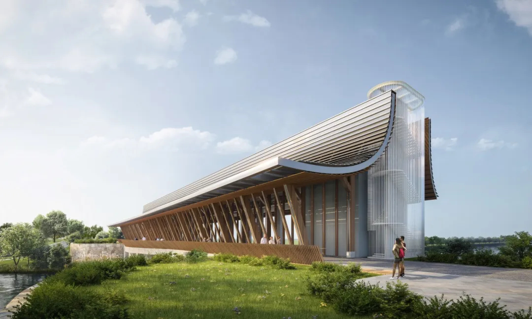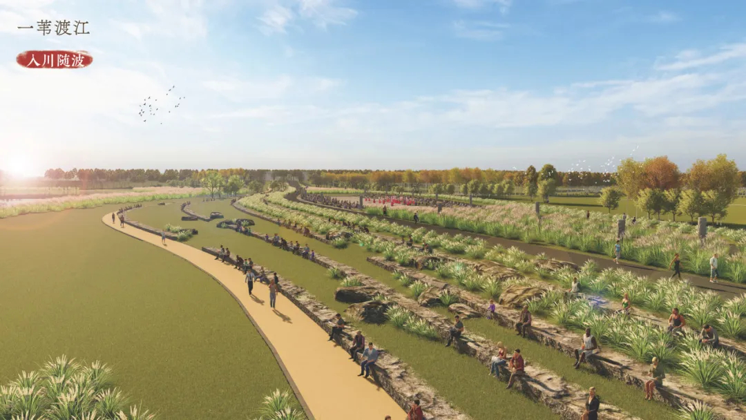 在水利樞紐改擴(kuò)建的過程中,如何以水利建筑與景觀自然相結(jié)合的共存方式,改善公共空間與現(xiàn)存水利建筑之間的聯(lián)系,做到既滿足防洪規(guī)劃要求,又能夠創(chuàng)造高品質(zhì)的濱水景觀氣質(zhì),真正為公眾服務(wù),是設(shè)計(jì)團(tuán)隊(duì)需要研究回答的課題。與恢弘的人工水利設(shè)施相比,淶河樞紐的建筑與景觀尺度更大、更自然,水利堤防就是九曲畫卷的畫軸,景觀就是層層鋪設(shè)的底色,建筑就是畫中的點(diǎn)綴,三者共同構(gòu)成一幅絕美壯觀的山水畫卷。通過整理岸線及林相(森林的外形),營造濱河林地、葦蕩蘆海等植物空間,注入郊野休閑、水利科普功能,打造人與自然和諧輝映之所。同時(shí)希望借容城古八景重塑“白溝曉渡”的歷史風(fēng)貌,通過九個(gè)新節(jié)點(diǎn)的引入打造雄安新地景,多自然、少人工,形成“錦瑟蘆堤,水流箏鳴”的山水畫卷。