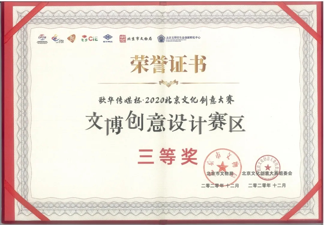 北京建院準工方+AC團隊參加了本次大賽,參賽作品先后經(jīng)歷了“文博創(chuàng)意設(shè)計賽區(qū)-中軸線賽道”初賽、復(fù)賽路演、半決賽路演,取得了“中軸線賽道二等獎”,同時被選送進入于2020年12月26日進行的“文博創(chuàng)意設(shè)計賽區(qū)”總決賽,與老字號企業(yè)、各大博物館、各大院校、傳統(tǒng)手工藝品牌、設(shè)計公司、文旅公司、科創(chuàng)團隊等單位的成果同臺競技,最終榮獲“文博創(chuàng)意設(shè)計賽區(qū)總決賽三等獎”。