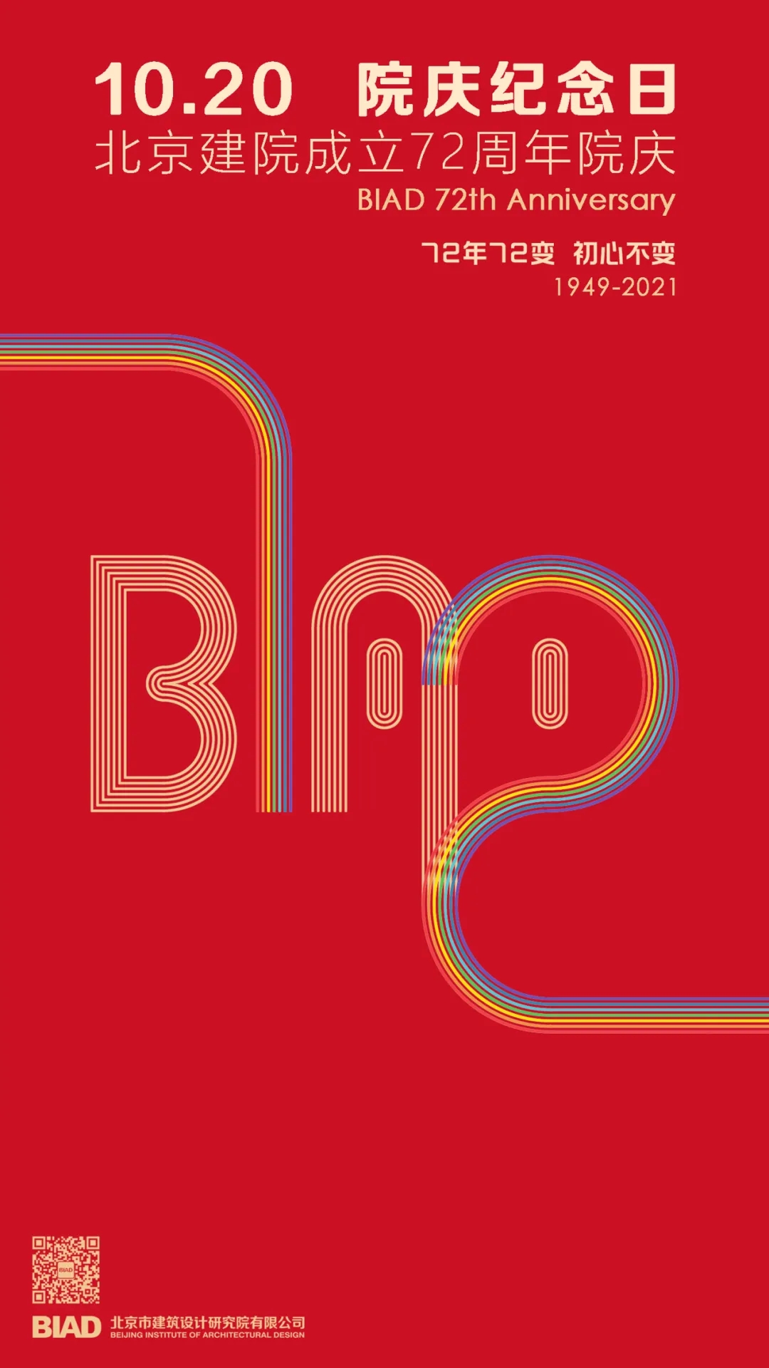 北京建院成立日期可追溯到1949年10月1日之前,將10月20日定為院慶紀(jì)念日,一是為了與偉大祖國(guó)共慶10月金秋,二是因?yàn)椤?020”也是網(wǎng)絡(luò)用語(yǔ)“一定愛你”的諧音,突出公司既有深厚的歷史積淀,也有面向未來年輕、積極的心態(tài)。