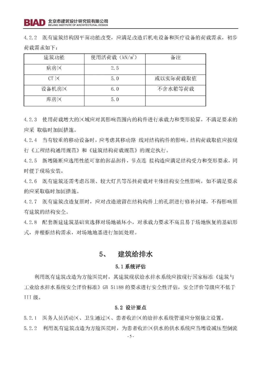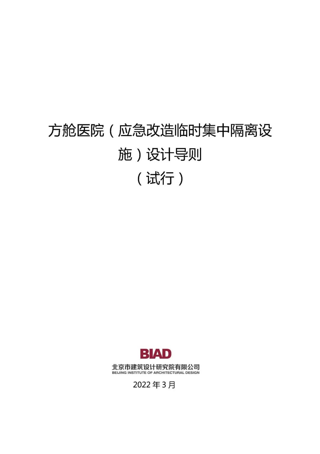 針對近期疫情變化,為了更好地支持各地醫(yī)療主管部門及設(shè)計企業(yè)開展應(yīng)急改造醫(yī)院選址及建設(shè)工作,在公司黨委的領(lǐng)導(dǎo)下,北京建院總結(jié)醫(yī)療建筑及防疫工程設(shè)計經(jīng)驗,編制完成《方艙醫(yī)院(應(yīng)急改造臨時集中隔離設(shè)施)設(shè)計導(dǎo)則(試行)》。該導(dǎo)則適用于北京地區(qū)快速、集中收治的新冠肺炎輕癥患者和無癥狀感染者的應(yīng)急改造臨時集中隔離設(shè)施,總結(jié)了選址與場地、建筑設(shè)計、建筑結(jié)構(gòu)、建筑給排水、建筑供暖通風(fēng)與空氣調(diào)節(jié)、建筑電氣、建筑智能化、醫(yī)療工藝、消防設(shè)計等九個方面的系統(tǒng)評估和設(shè)計要點,為應(yīng)急改造臨時集中隔離設(shè)施提供指導(dǎo)和參考。
